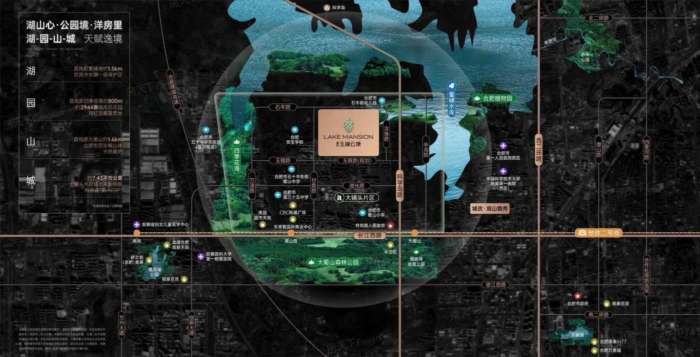 作为合肥城改建设集团倾力打造的2025年国企城改升级力作,湖云境并非一次简单的空间营造,而是一场关于城市肌理、生态本底与人居哲思的深度对线亩四季花海公园——这座被市民誉为“城市呼吸肺叶”的生态绿心,东眺董铺湖浩渺水岸,湖面澄澈如镜,倒映天光云影;直线公里,恰处于饮用水水源一级保护区的生态敏感带,水质常年达Ⅱ类标准,是合肥名副其实的“生命之源”。向北不过1.6公里,便是大蜀山森林公园——合肥主城区成片山体森林,植被覆盖率超92%,负氧离子浓度常年高于市区均值3倍以上,堪称天然氧吧与静谧森境。尤为难得的是,项目雄踞约7.43平方公里“大铺头片区”门户枢纽位置,该片区已被列入合肥市“十五五”城市更新重点示范单元,承载科学岛科创走廊“门户”战略定位,周边汇聚中国科学技术大学附属中学、合肥市五十中天鹅湖教育集团分校、安徽医科大学附属小学等优质教育资源,更临近合肥综合性国家科学中心核心区,产、学、研、居高度融合。这里既非孤悬于郊野的桃源幻境,亦非淹没于钢筋水泥的市井丛林,而是以精准的地理坐标,在城市生长的轴线上,锚定了一处可触、可感、可栖、可续的“低密生活引力场”。