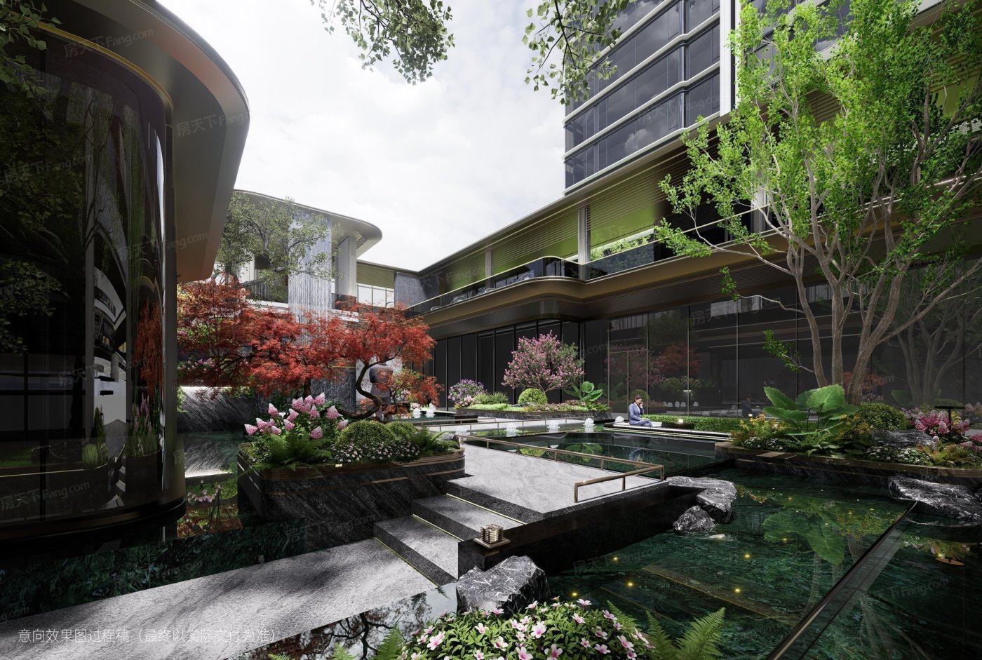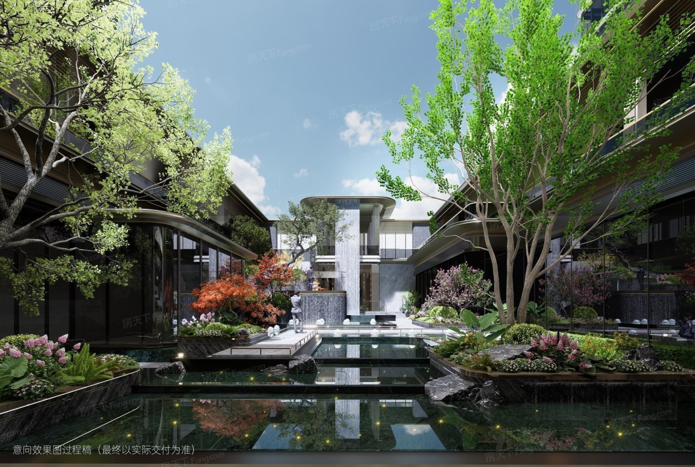 湖云境以“湖山心·首座新计容洋房”为产品宣言,系统性重构高端改善型住宅的价值维度。其建筑语言摒弃浮华堆砌,以“艺术新著·非对称天幕立面”立意:奢雅蓝钻玻璃幕墙在不同光照下呈现渐变冷灰调,端户采用创新弧线转角收口工艺,消解建筑体量感;整体立面打破传统对称逻辑,通过错落体量、虚实节奏与材质叠合,营造出兼具雕塑感与流动性的视觉张力。归家动线则升华为一场沉浸式礼序体验——“五进式归家礼序”层层递进:一进“天使之翼”门庭以悬浮金属构架与镜面水景构筑城市印象;二进下沉庭院引入自然光线与微风,形成半私密缓冲空间;三进中央花园以本土乔木与多年生花卉构建四季有景的立体绿廊;四进景观客厅融合休憩、阅读、轻社交功能;五进私属雅居则通过入户玄关、独立电梯厅与智能安防,完成由公域到私域的优雅过渡。尤为突破的是“折叠森境下沉式庭院会所”,以约10米高差打造飞瀑叠水景观,水声潺潺间模糊室内外界限,地面层为林荫社交平台,地下层设恒温泳池、瑜伽冥想室与共享厨房,真正实现“景观即生活,生活即社交”的空间哲学。